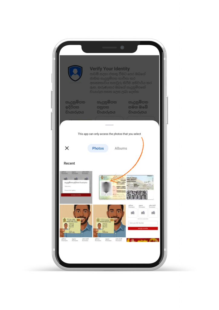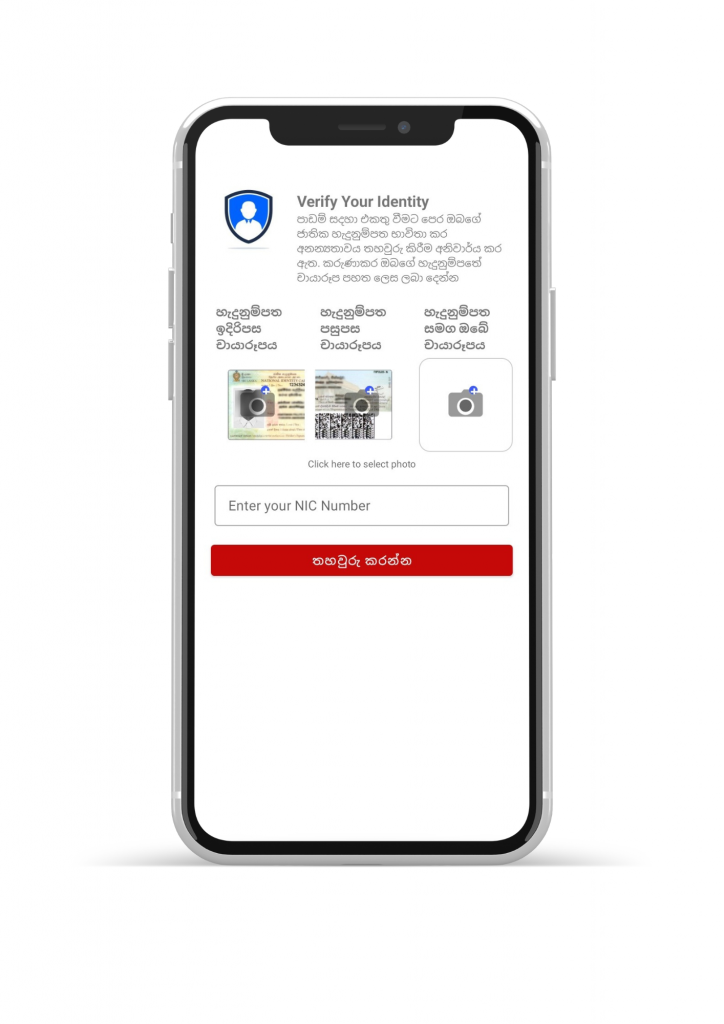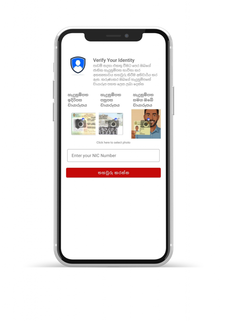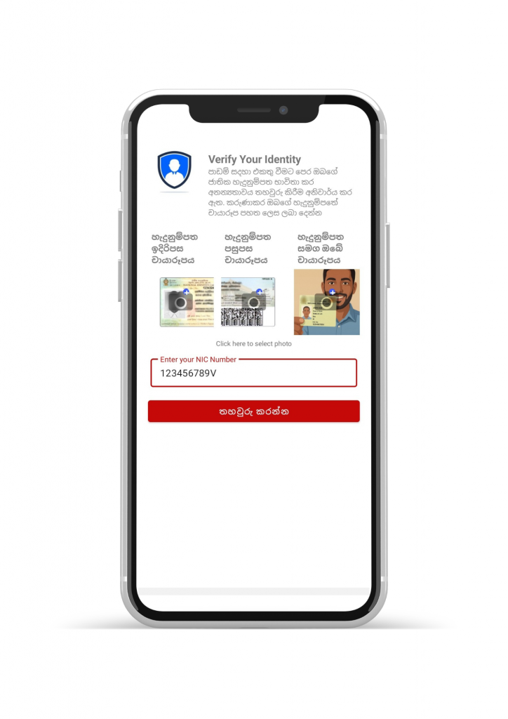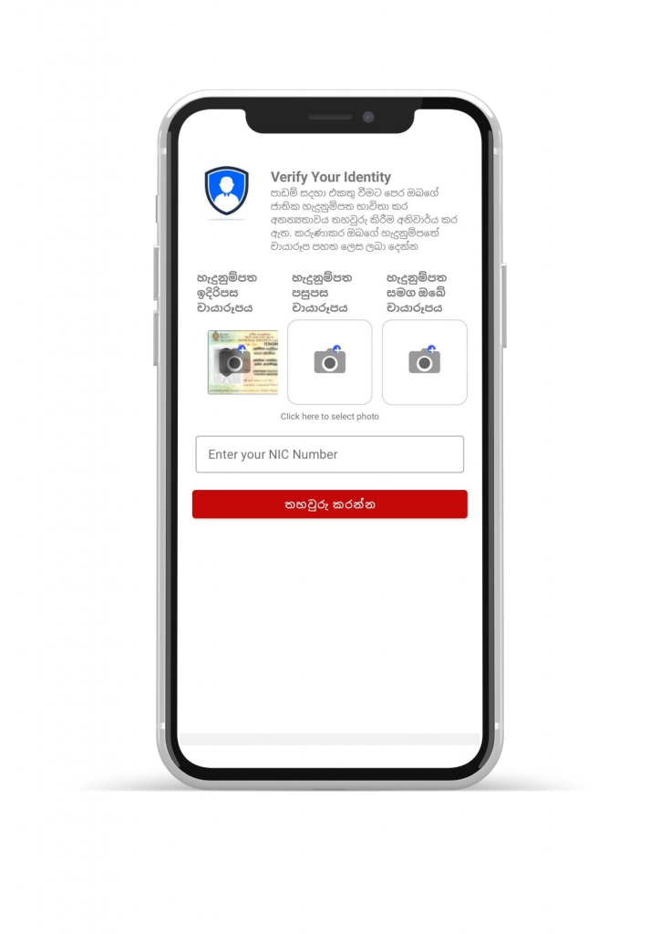 ඔබේ මුහුණත් NIC එකත් එක්ක පැහැදිලිව පෙනෙන selfie එකක් upload කරන්න.